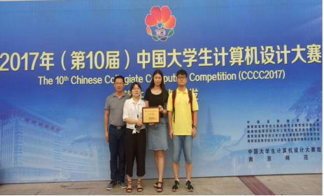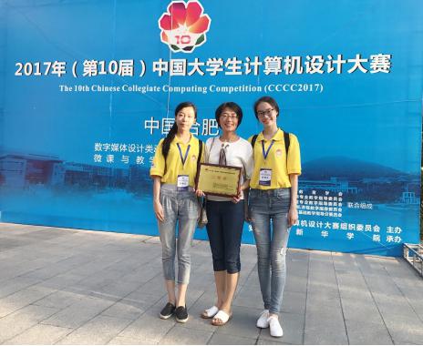 The 2017 (tenth) Chinese College Computer Design Contest was held in Hefei. Our two teams won the national second prize. Among them, Wang Yanand the students team Wu Shumin, Yang Yizhen designed the entry "Photoshop in the clipping mask application through housing secret" won the "micro courses and teaching assistant class national award, getting highly recognized experts. Teacher Wang Hua's 2014the grade student team, Luan Yu, Ding Lei, Zhao Jinmin's entries "easy to practice" also achieved good results, won the "software application and development class" the national two prize.