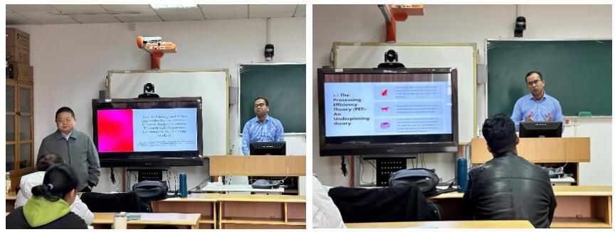 Associate Professor Shahbaz Hussain focused on the doctoral student population and systematically explained the sources, manifestations, and coping strategies of anxiety and stress among doctoral students. He focused on exploring how anxiety and stress affect student performance through self-regulated learning. After the lecture, the faculties and students had an interactive exchange with Dr. Shahbaz Hussain.
