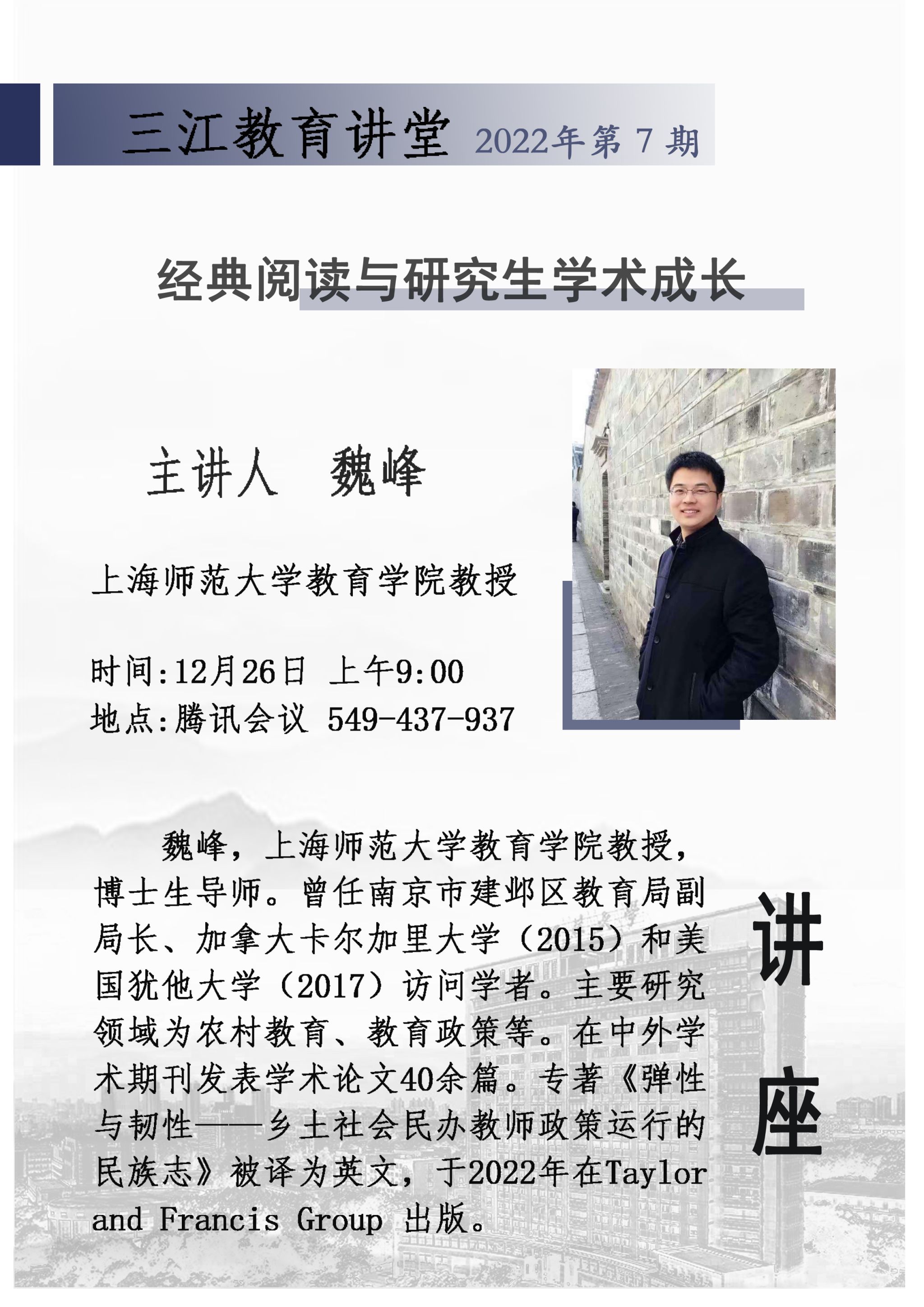 上一条:三江教育讲堂(第8期):教育研究课题的设计与申报(刘宝存教授) 下一条:2021级全日制教育硕士研究生开题结果公示