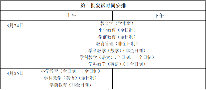 2021年硕士研究生复试分两批进行,第一批为第一志愿考生复试,同一专业既有全日制计划又有非全日制计划的,按全日制和非全日制分开记分;第一批复试安排在3月24日至3月25日期间,上午8:00-12:00,下午1:30-6:00。