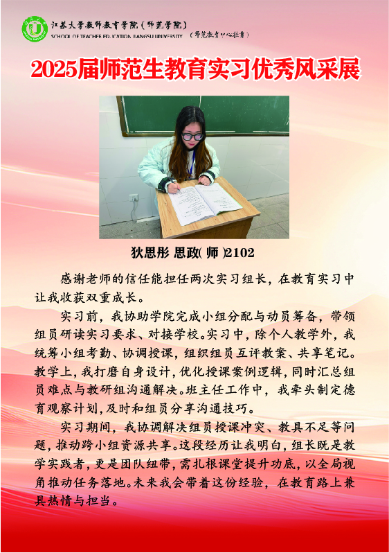 上一条:2025年教育实习优秀带队教师风采展 下一条:2022级师范生教育实习组长工作总结会召开