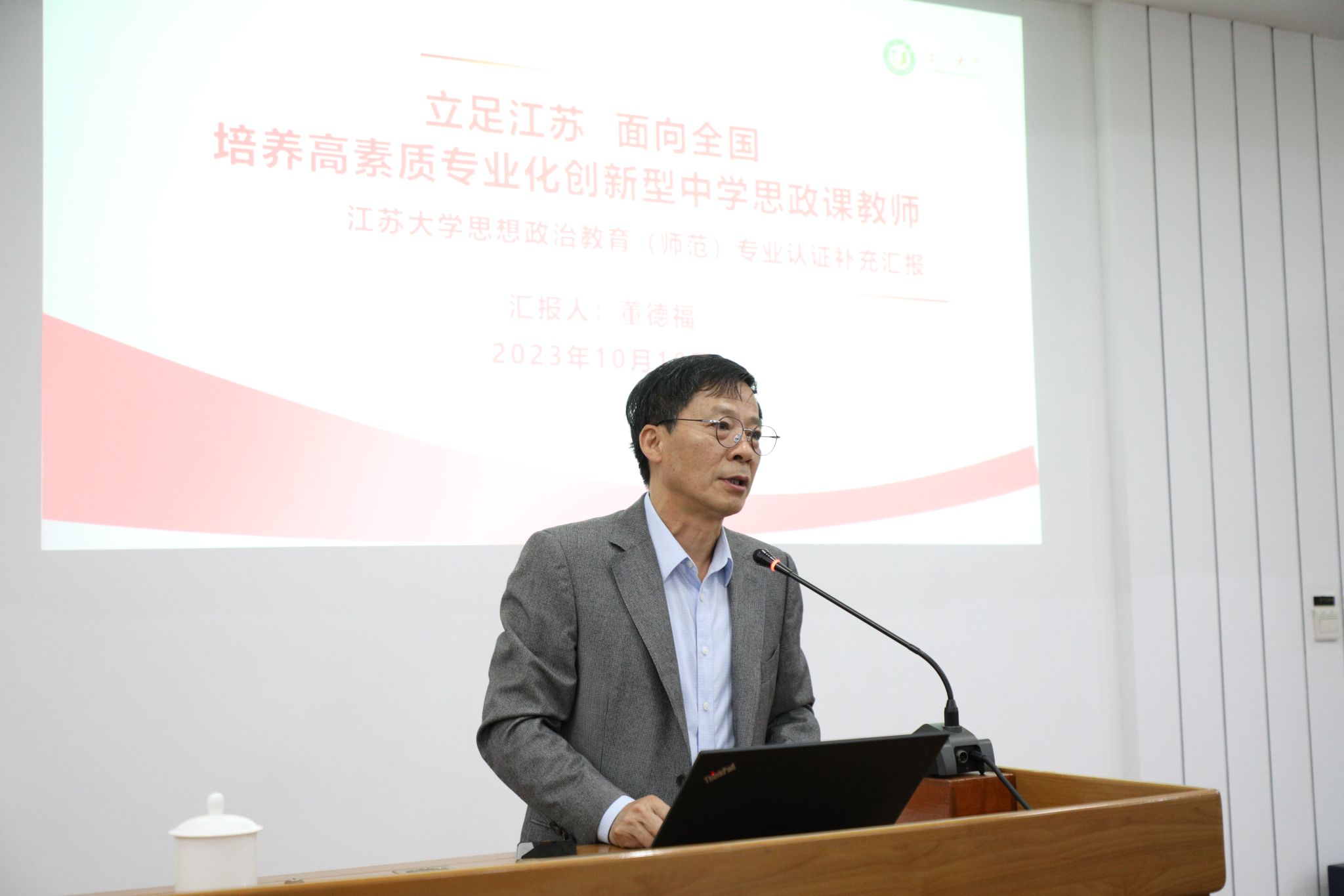 10月10日至12日,我校思想政治教育(师范)专业接受教育部师范专业第二级认证现场考查。10月10日上午,思想政治教育(师范)专业二级认证自评说明会于第二学术报告厅召开。自评说明会第一阶段由江苏大学副校长邹小波教授主持,第二阶段由专家组组长王伦教授主持。