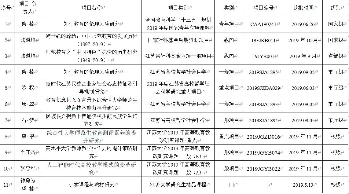 2018-2019 年度科研项目